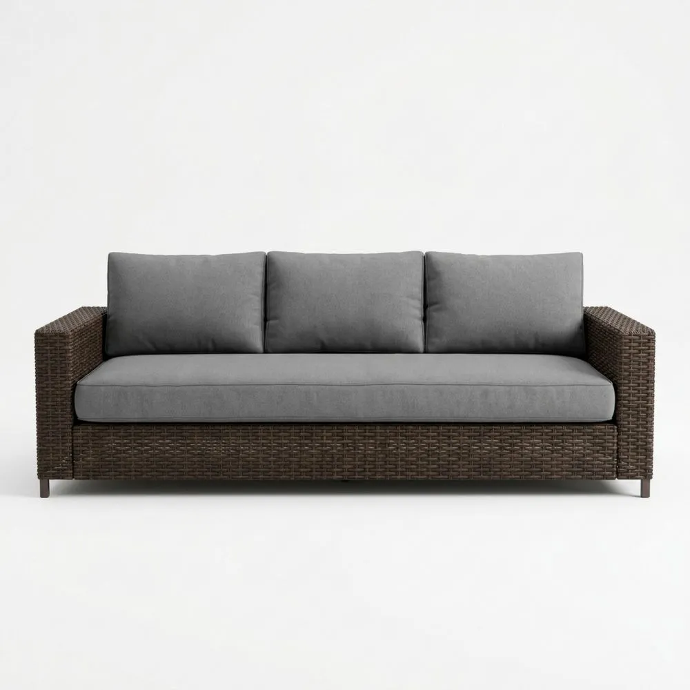 3-Sitzer Gartensofa Rattan Dunkelbraun Grau