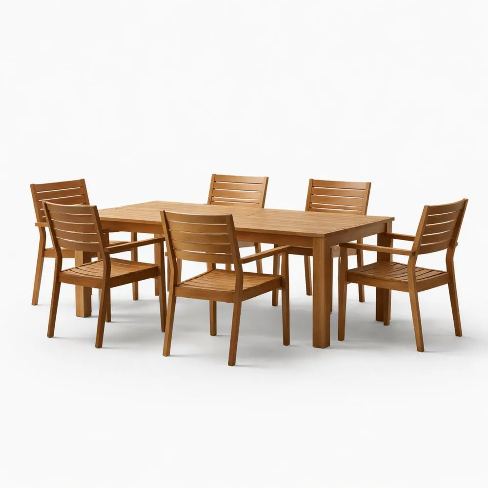 Esstischgruppe Akazienholz rechteckig mit 6 Stühlen