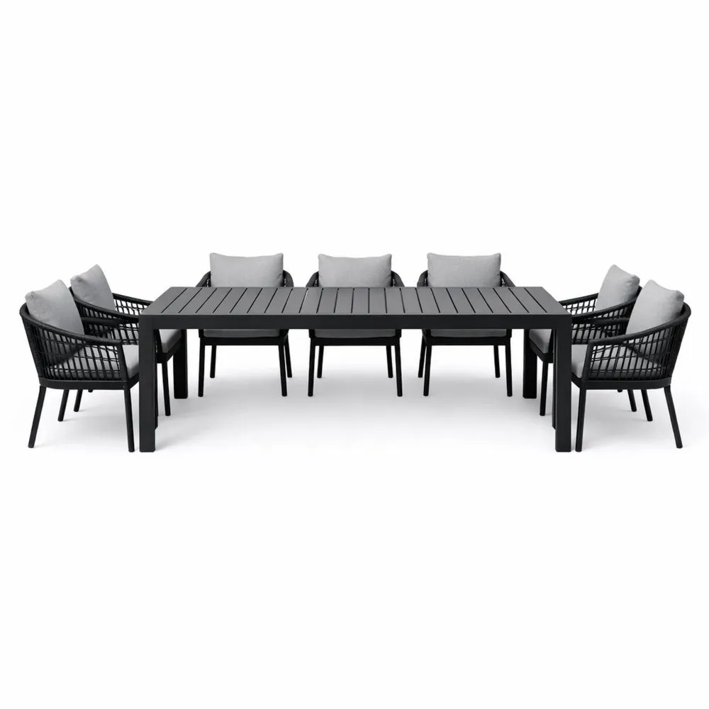 Garten-Essgruppe aus Aluminium in Anthrazit mit Tisch und 7 Stühlen