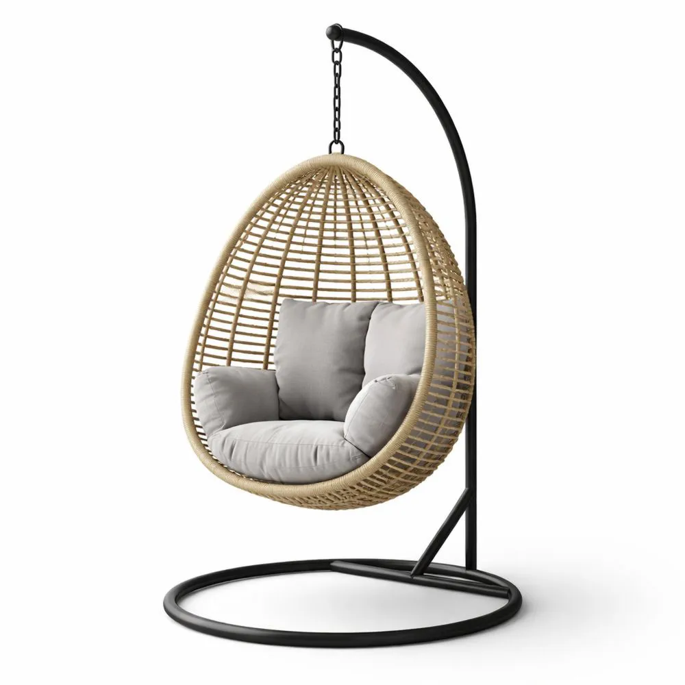 Hängesessel Ei-Form Rattan Beige/Grau mit Stahlgestell