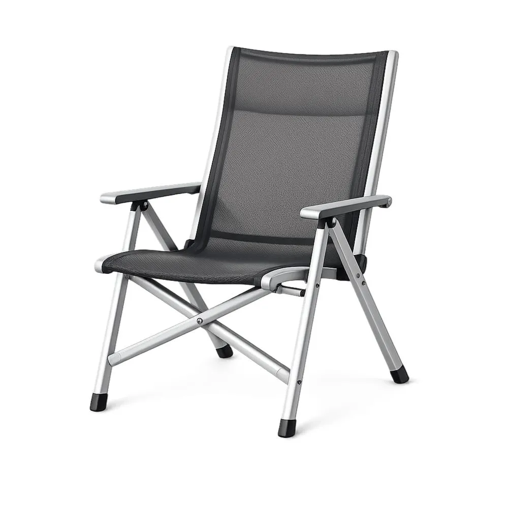 Klappbarer Aluminium-Relaxsessel mit Armlehnen, Mesh, schwarz/silber, belastbar bis 120 kg