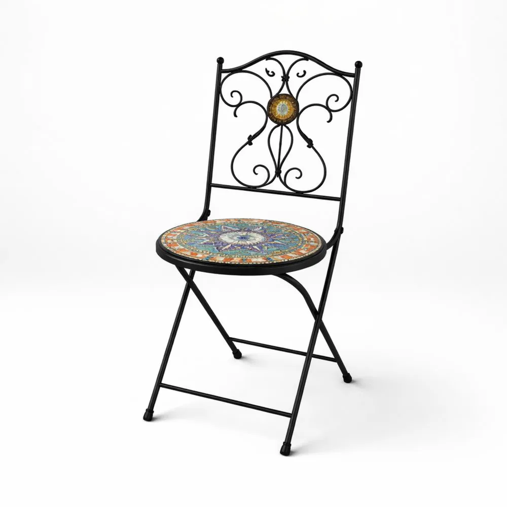 Klappbarer Stahl-Relaxsessel mit Keramik-Mosaiksitz