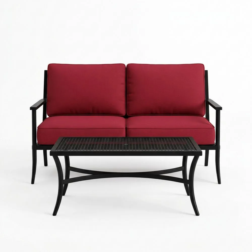 Outdoor-2-Sitzer-Sofa mit Tisch aus Stahl und Polyester in Rot