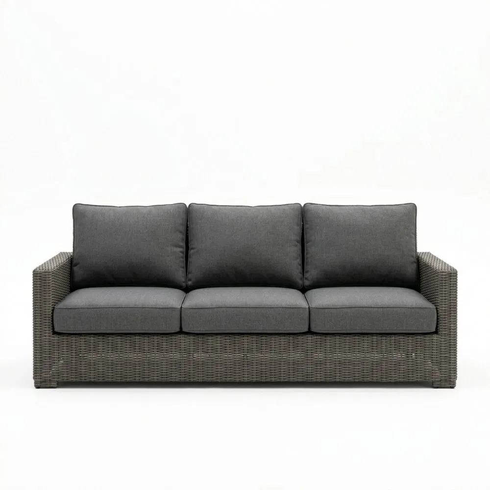 Outdoor-3-Sitzer-Sofa aus Rattan mit grauen Kissen