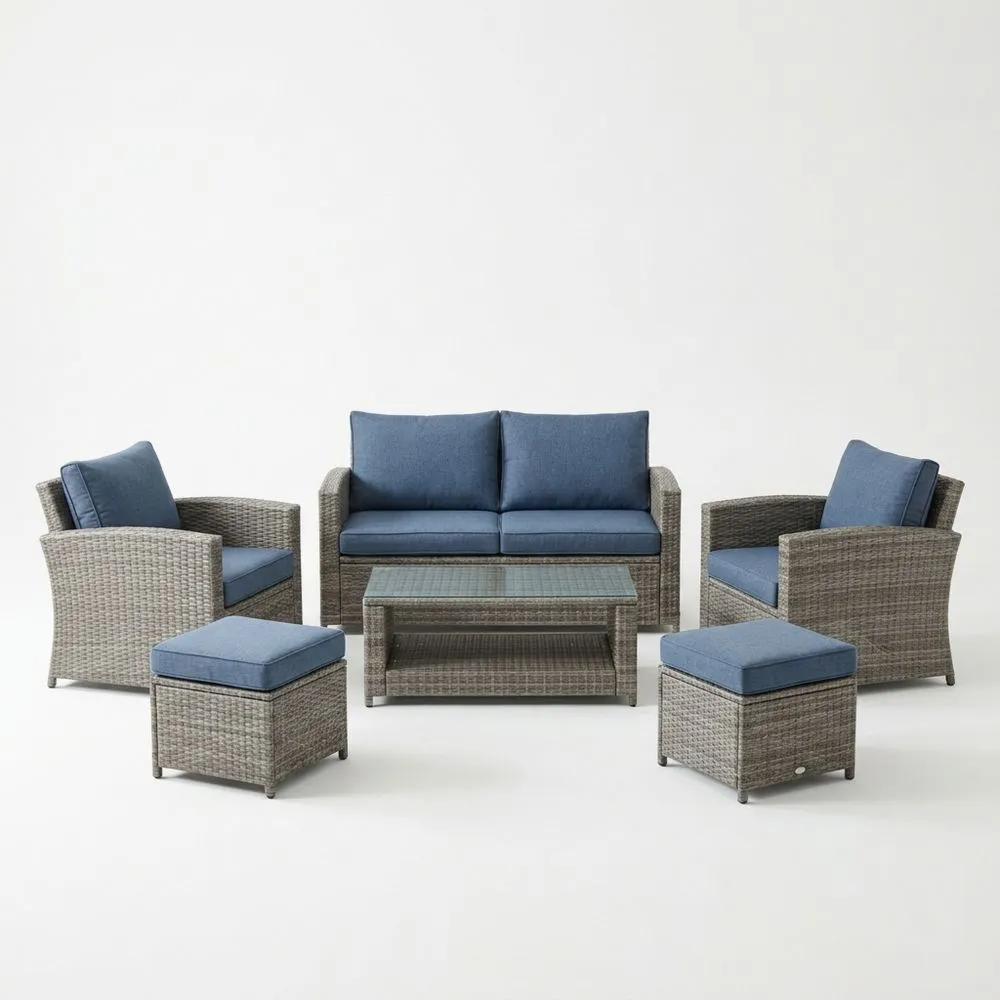 Outdoor-Loungeset aus Polyrattan in Blau und Hellgrau