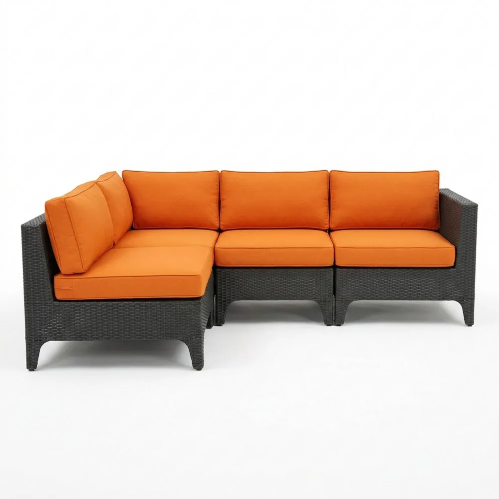 Rattan-Ecksofa mit Polstern Orange Polyethylen Aluminium Gesamtlänge 200cm