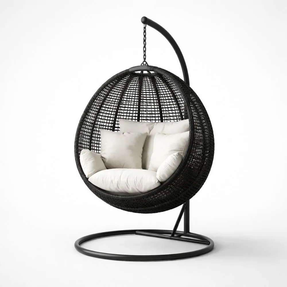 Schwarzer Rattan-Hängesessel mit Polyesterkissen