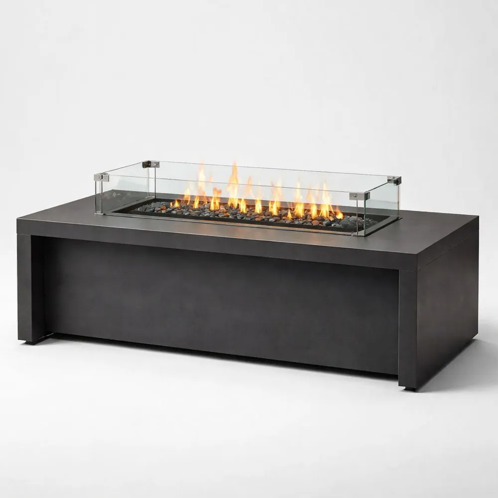 Terrassen-Feuertisch aus Stahl mit gehärtetem Glas